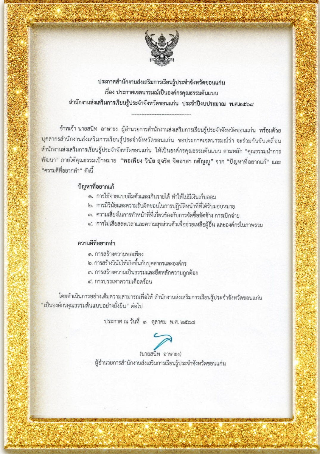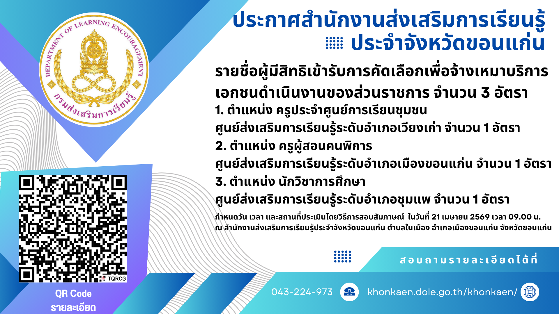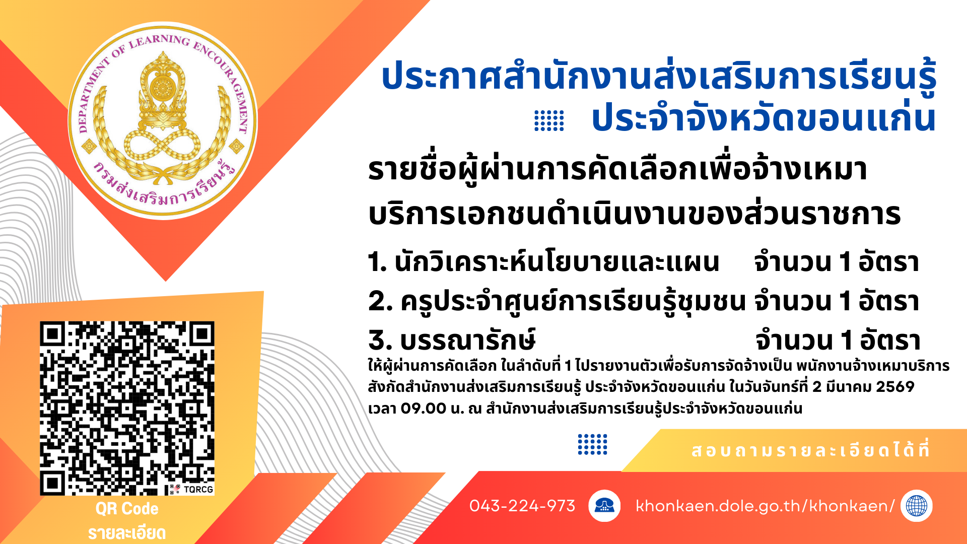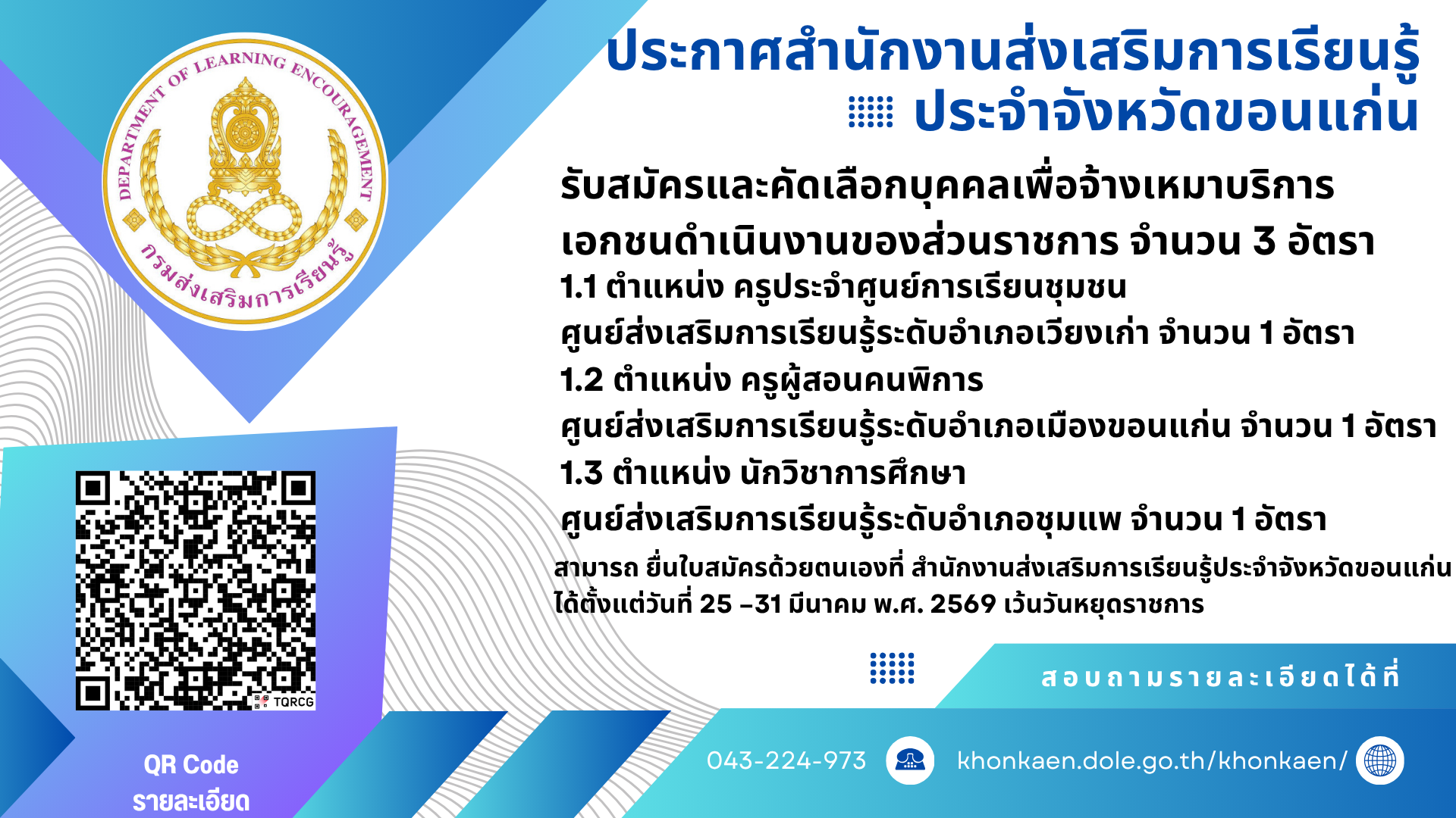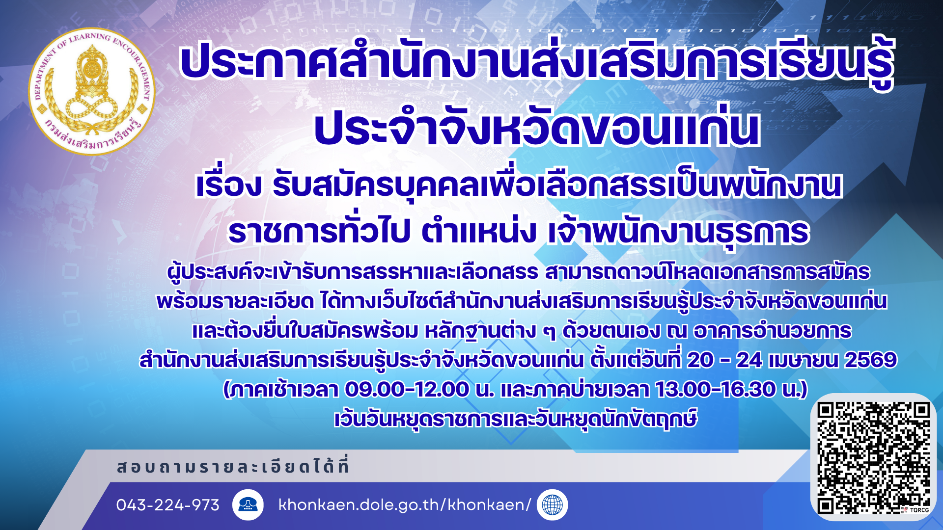 ประกาศจาก สำนักงาน สกร.ประจำจังหวัดขอนแก่น